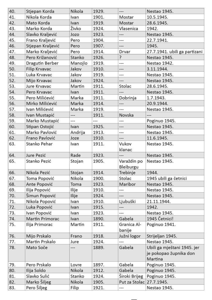 ⚠️ Molim vas, pogledajte popis, pomolite se za njih i za nas, provjerite popis i ako netko ima što dopuniti, popraviti, novo ime reći, okolnost kazati, neka se javi u Župni ured, Župnom Pastoralnom Vijeću ili Župniku!